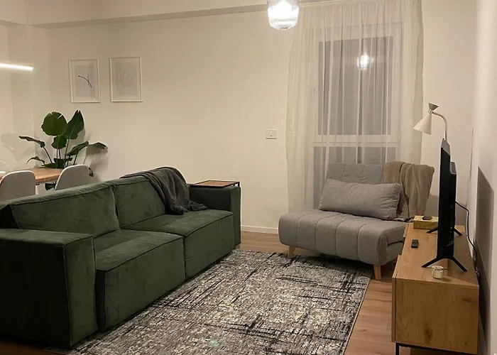 60m²のティミショアラLeafy Haven Hideout!アパートメントは三成聖者大聖堂から3.3キロメートルで、ティミショアラ動物公園などの家族連れに人気のスポットから車で10分の場所にあります。 この寝室1室のアパートには、庭園の眺めを見渡せるテラスもあります。